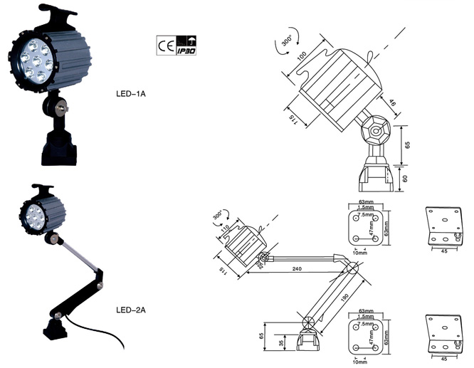 特点:LED系列工作灯用途: LED系列工作灯适用于各类中、小型机床工作照明及数控、组合机床的加工照明及展览,广告中做局部照明。