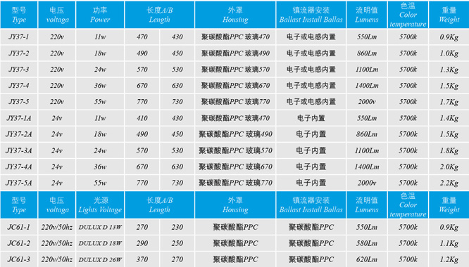 Characteristic:The JY37 series fluorescent work lamps are waterproof, corrosion resistant and explosion resistant.