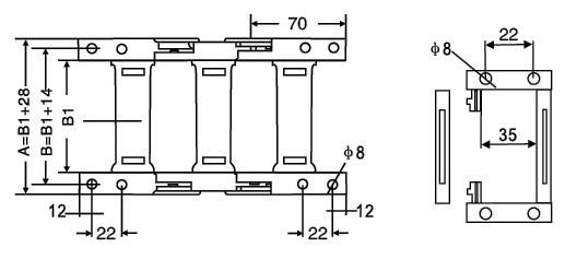 TP35 塑料拖链(桥式)特点:、、不变形、低噪音、装拆灵活、寿命特长。