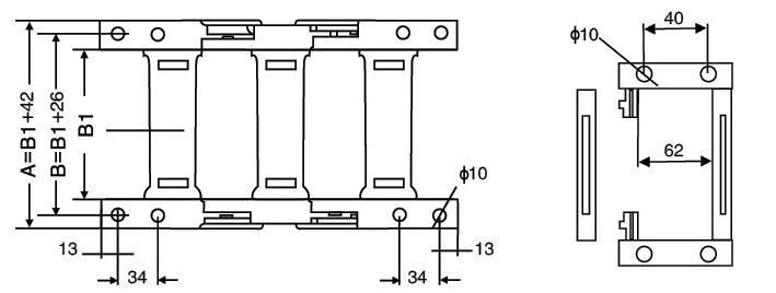 TP62 塑料拖链(桥式)特点:、、不变形、低噪音、装拆灵活、寿命特长。