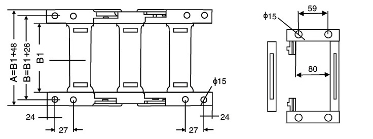 TP80 塑料拖链(桥式)特点:、、不变形、低噪音、装拆灵活、寿命特长。